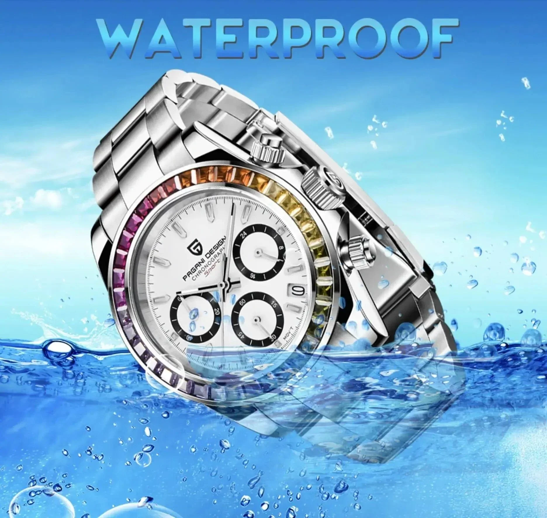Pagani Design | Luxury | Meca-quartz Movement (SeikoVK63) | Stainless Steel Men's 40MM Watch (Rainbow White)